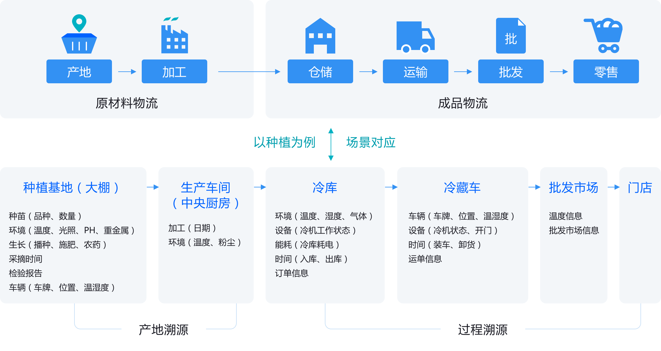 实现在原料生产、半成品加工、成品流通等过程中,对物品品质控制存在影响的关联参数数据,进行全面监测和记录,并可在事后查询追溯物品品控数据,关联参数主要为环境参数,如温度、湿度、振动、倾斜、光照、跌落、压力等指标
